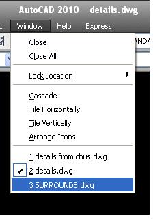 Jack_O'neill Posted January 15, 2011 Posted January 15, 2011 If you get more than 2 or 3 drawings open at once, it becomes far easier to maximize one of them, and then switch between them as needed. One method for doing that is by using this menu: This menu is also where you tile the windows if you wish, lock thier positions and an assortment of other options. You are limited in how many you can open only by how much your ram and processor will stand. Quote