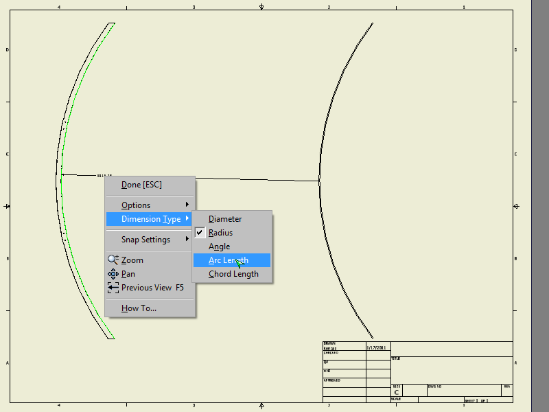 kencaz Posted January 18, 2011 Posted January 18, 2011 I would not bother trying to flatten that unless you had holes or slots to cut. It's just a matter of the arc length... Select the line in your idw, right click select dim type "arc length" KC Quote