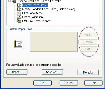BlackBox Posted January 19, 2011 Posted January 19, 2011 Does anyone know how this feature (add custom paper sizes) can be disabled? Better yet, can someone tell me how to re-enable it!? I am trying to print a long roll to one of our multi-roll printers, and can no longer customize the PC3 file's 'custom paper sizes': Edit: 'Custom Properties' does not provide this missing functionality either. I have full rights to both create/modify PC3 files locally and on the server. We've just undergone a migration to all new systems, and all of our custom paper sizes are missing. In the past, when we get a new printer, etc. I've gone into the PC3 and simply created/modified what we need, saved the PC3 and moved on. Easy. This is really frustrating, and IT has no idea what may have caused this loss of functionality. Edit: This 'loss' applies to everyone enterprise-wide, no less, and not just on my machine. Any help would be most appreciated. Quote