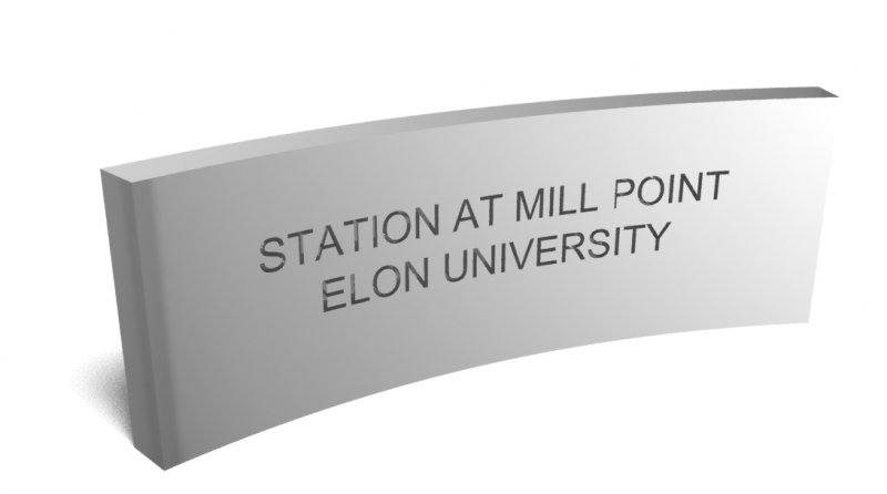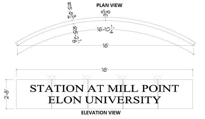 My problem is we need to have the lettering on the concave side of the sign. How would I make the flat lettering I have in the elevation shot follow the curve of the sign in the plan view?