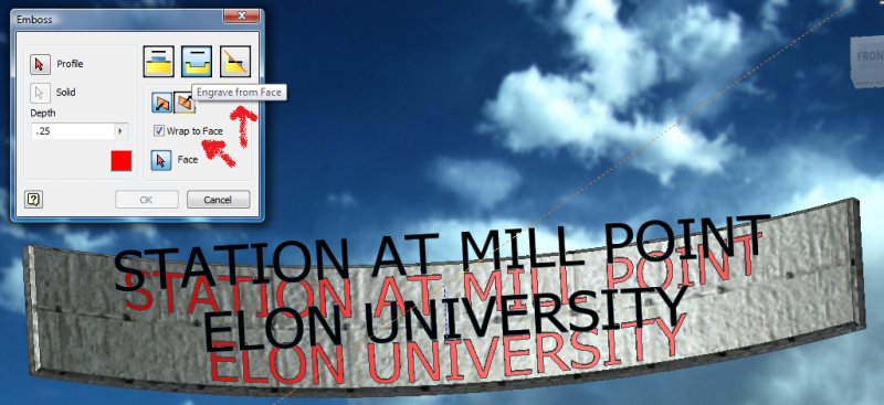 Paid absolutely no attention to actual dimensions, or layers, for that matter. None of that mattered. The process is the same no matter what size it is. No, the letters aren't bent around like in JD's inventor solution, but they don't need to be. You will get what the monument maker can produce, and he will make his own drawings when you approve the design.