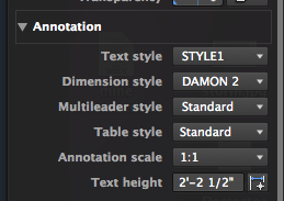 ReMark Posted September 23, 2011 Posted September 23, 2011 Thank you! Yes, you are using AutoCAD for Mac and not the PC version of AutoCAD running on a Mac. There are substantial differences between the two. Some features are different and some are missing altogether. See where it says ANNOTATION in the Properties Inspector? Click on the down pointing arrow next to it. Do more options appear? Quote