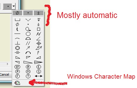 JD Mather Posted October 14, 2011 Posted October 14, 2011 ...the use of cryptic symbols... The concept is that the symbols can be (?) understood across languages whereas words (or abreviations) like C'bore, C'sink, DP, TYP (TYPICAL) are not language neutral. But hey, here in the US we still use mostly imperial rather than metric. If only Jimmy Carter had mandated that speed limit signs were ONLY metric rather than dual dimension (MPH/KPH) we would have had a world standard long ago. It is the conversion (translation) between starndards that causes problem. Didn't take long to get a feel for 2Liter. The symbols in the first two rows are mostly added automatically as the software knows a counter bored hole is a counter bored hole, but of course manual editing can be used as needed. For symbols not in the common GDT list there is a link to the Windows Character Map for quick access. I might also add that in the modern MCADs (like SolidWorks) they are units aware - that is if units mm is added to magnitude the software knows that - can enter mixed unit equations like 10in + 30mm or whatever appropriate units added the magnatude and the geometry reflects the desired units entry. Make fitting things like metric motors to old inch equipment much less error prone as conversions not needed - the software takes care of units. Quote