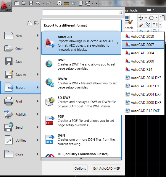 f700es Posted October 20, 2011 Posted October 20, 2011 Only ACAD verticals (MEP, Arch, Civil) have the export feature Rob is showing. This is to allow the file to be used in vanilla cad and other dwg editors IIRC. My 2012 Acad is like what Remark says and my Arch 2012 is like your picture above. Quote