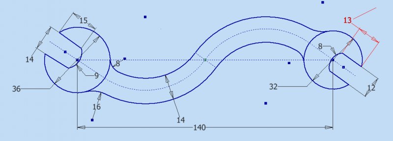 eldon Posted October 23, 2011 Posted October 23, 2011 In fact, as long as the two end circles are 140 apart, one could draw any shape between these two. I am just trying to prove that there is a dimension missing, so that to draw the shape, you have to assume some dimension, and cannot draw it only from the annotated ones Quote