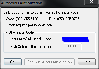 toygoose Posted January 8, 2012 Author Posted January 8, 2012 Just for good measure I un/reinstalled AutoSolids. With thefirst start up of AutoCAD the Autosolids Authorization box pop up. It sayscall, fax, or email to obtain you auth code. It show the ACAD serial number,AutoSolids auth code and has 3 buttons, OK Continue without Auth, and Help. theContinue without auth button is grayedout and can't be used. Click OK and the 3D Command Center window opens. Hereyou can setup how AutoSolids loads and displays the views. Click OK and itseems everything is good. Now every time AutoSolids loads, it brings up the AutoSolidsAuthorization window. It's almost like it wants to be Authorized for it towork. Quote