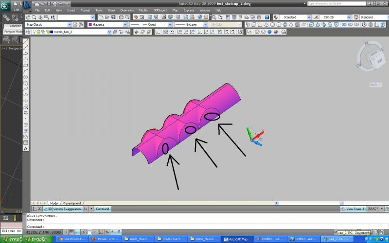 xris_grecia Posted January 25, 2012 Author Posted January 25, 2012 Hello!! Maybe i should post a new threat but as my question is relative to creating a 3dsolid in order to be used as part of a vault i m writting here again! i want to make a 3dsolid of a shape like the one in foto_1. (the surface that is visible is actually a mesh not a solid). but if i try the exrtude command i get a result in foto_2. This is because my arcs are not perpenticular (the exrtruding direcion is the perpenticular one_like in foto_2) any advice?? thanks a lot! Quote