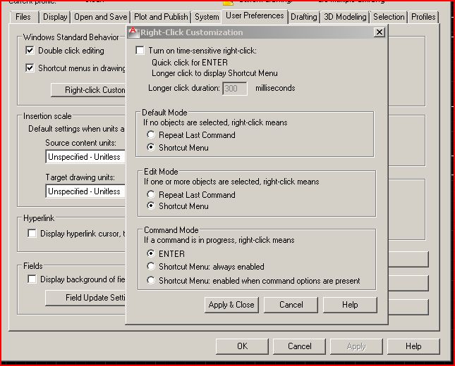 Dadgad Posted January 23, 2012 Posted January 23, 2012 Sorry I have never used Autocad 2004, but nowadays you could do that in your OPTIONS on the User Preferences tab, RIGHT CLICK SETTINGS as shown in the attachment. Just in case you might have OPTIONS in 2004. Quote