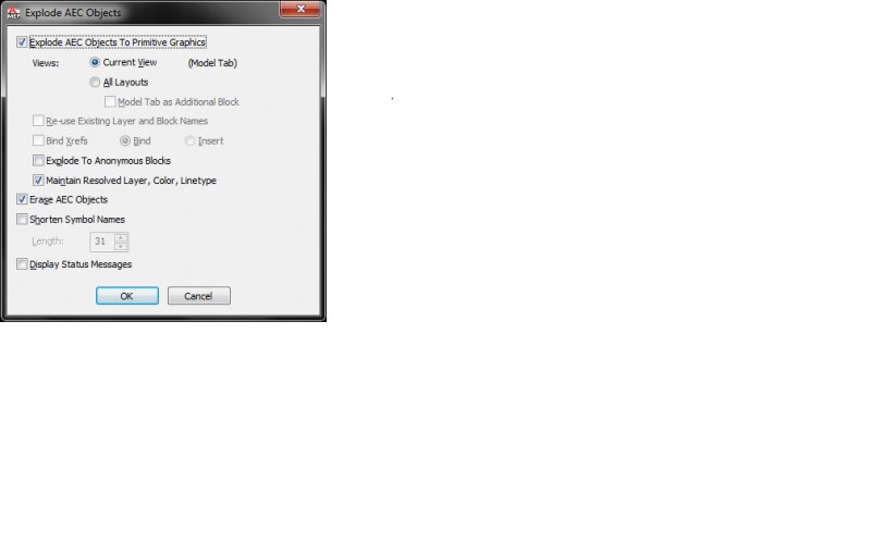 RobDraw Posted January 25, 2012 Posted January 25, 2012 Also, the command AECOBJEXPLODE will do it without the need to create another file. I use these settings. You may need to select "All Layouts". Quote