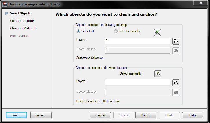 ScribbleJ Posted February 2, 2012 Posted February 2, 2012 Since you have Map 3D you already have within your tools one that is very powerful and overlooked. Drawing Cleanup. It is a tool only found in Map 3D. The first part of the dialog lets you choose the entities you want to work on by several methods (i.e. layer, selection, etc.). See the images below. Quote