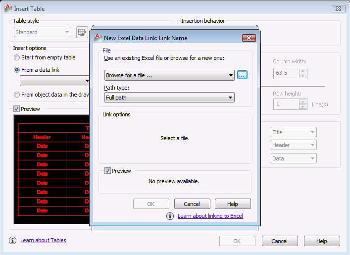 dirkvandonkelaar Posted February 11, 2012 Posted February 11, 2012 You can import Excel as a reference, so you can edit the excel sheet in excel and in AutoCAD and the sheet will be updated in both CAD and excel. Here is how you do it: First you excecute the command "Table" Then you select "From a data link" Then browse for a data link Then create a new data link Click "Browse for an file" and browse to the file you want to insert. Press 3x OK and insert your table. Now your table is the excel sheet. When you changed it in Excel, you can type "DATALINKUPDATE" to update the file in AutoCAD. I hope i've helped you out. Quote