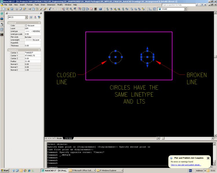 WERDNA Posted April 2, 2012 Posted April 2, 2012 Can anyone tell me why a circle is not showing the particular linetype (no matter what scale I adjust it to) until I break the circle line? Quote
