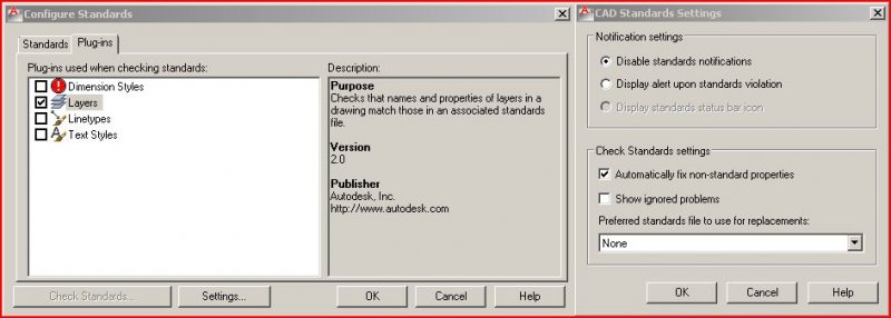 BlackBox Posted April 14, 2012 Posted April 14, 2012 As I suggested before, you should consider using a Standards file (.DWS)... From the Help: Overview of CAD Standards The auditing process uses standards plug-ins, applications that define the rules for the properties that are checked for individual named objects. Layers, dimension styles, linetypes, and text styles are each checked against their corresponding plug-ins. You can specify which plug-ins to use when checking a drawing for standards violations. Autodesk or third-party developers may add standards plug-ins for checking additional drawing properties. All plug-ins check all properties for each named object except for the layer plug-in. The following layer properties are checked when using the layer plug-in: Color Linetype Lineweight Plot style mode Plot style name (when the PSTYLEMODE system variable is set to 0) The following layer properties are not checked by the layer plug-in: On/Off Freeze/Thaw Lock Plot/No Plot HTH Quote