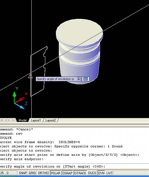 nocturne00 Posted December 4, 2008 Posted December 4, 2008 Ok quicker solution, toggle side view in VIEWS toolbar, then use flatshot on your object, explode the flatshot object and trim half of it, then use boundary to make it into a closed polyline. then revolve the half section. Easy as can be Quote