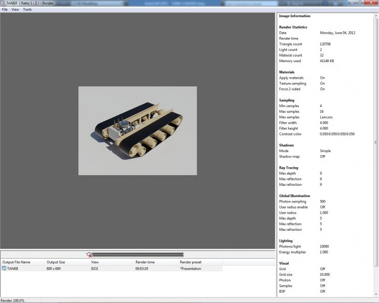 swats Posted June 4, 2012 Author Posted June 4, 2012 How does this look? The material I had chosen for the aluminum parts was reflecting the white background too much. I also added a floor for it as well. The model contains 103 solids, I set the render resolution to 3300 x 2550. It took 18 minutes to render. Quote