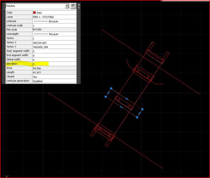 Dadgad Posted July 3, 2012 Posted July 3, 2012 Here you go, So basically juring the job, we were instructed that the asbuilts would be needed in pdf format, so we recorded our survey data, i'm an engineering surveyor. Then they decided they also wanted dxf, So i used our pdf'f to draft the x and y positions, now i want to change the z values to what they are in reality......... Welcome to the forum. You can change the elevations of these polylines in your QUICK PROPERTIES or PROPERTIES. The attached image show my QUICK PROPERTIES displaying relevant information for the selected polyline. As these are polylines they are all coplanar on the XY axii. If they are meant to have one elevation for each polyline, then you can just edit the information highlighted in yellow for the elevation of each object. This is not the sort of work I normally do, there are plenty of folks working in similar fields on the forum, but it may just be that simple. I hope that helps you. You can turn on your quick properties in your right click shortcut menu, or at the bottom center of your screen, second icon from the right. Quote