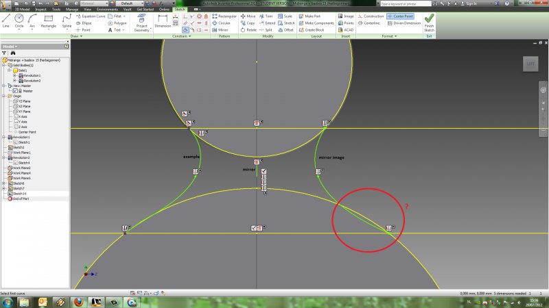 zalig Posted July 20, 2012 Posted July 20, 2012 I try to mirror a line (spline) who is tangent to 2 circles. I need these lines to use as rails for do a loft later on. When I do this, each time the mirror image isn't exactly like the example. I putted a photo in attachment to make things clear. What am I doing wrong? (excuse for my bad Englisch) Quote