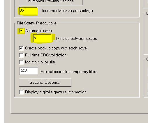Dadgad Posted July 27, 2012 Posted July 27, 2012 When you Qsave (Ctrl+S) it will reset the timer for the Automatic saves. When the drawing closes normally the Autosave files are deleted. My hypothesis, which I haven't tested, was that with ISAVEPERCENT set to 0, it might never go long enough between saves to trigger the Autosave time interval save. Quote