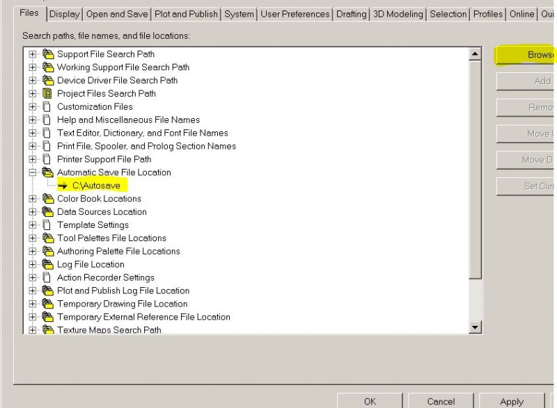 Dadgad Posted July 27, 2012 Posted July 27, 2012 Welcome to the forum. Check your ISAVEPERCENT setting. Might it be 0? Have you checked the location to which the files are being directed? In your OPTIONS on the FILES tab? nestly posted a couple good links earlier today or last evening about AUTOSAVE, well worth reading. Here is the link to that thread ........... http://www.cadtutor.net/forum/showthread.php?71309-Autosave-Backup-not-working Quote