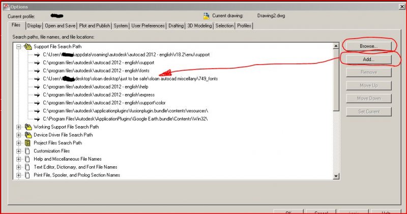 Dadgad Posted September 20, 2012 Posted September 20, 2012 You will need to open your OPTIONS, where you will be able to ADD them to your SUPPORT FILES SEARCH PATH, as shown in the image. They just need to be added to the list, they don't need to be added where I drew the arrow. Quote