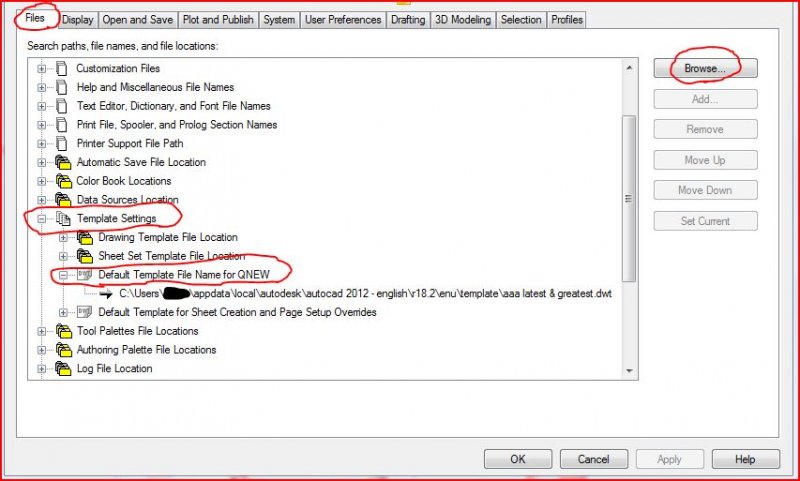 Dadgad Posted September 23, 2012 Posted September 23, 2012 After you have decided on one to use, or better yet, created a .dwt which you would be comfortable using as a starting point you will need to specify it as your default template. Go into your OPTIONS, as shown in the image ......... as long as you are creating a default template, you might as well make sure you have the drawing units sets as you want them. Use the -DWGUNITS command, and follow the commandline prompts, you might want to hit F2 while doing this so you can see more than 2 lines at a time. Quote