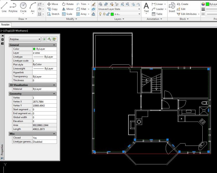 ReMark Posted November 1, 2012 Posted November 1, 2012 Draw a polyline around the perimeter of your house. Use the Area command with the Object option and select the polyline. Do not include the porch. How does one enter the room at the top left hand corner? It appears you have a picture window that looks into the room. Is it supposed to be a deck? Quote