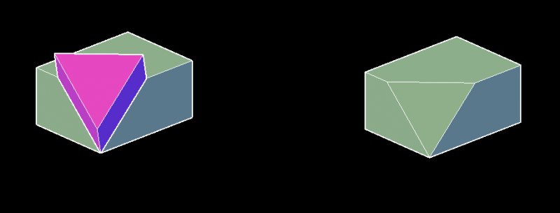 nod684 Posted November 6, 2012 Posted November 6, 2012 I have drawn figure1 with the help of rectangle and press/pull command. I have drawn figure2 with the help of line command.I want to trim the lines of figure1 which are shown in red color in figure2.How to do this? please, help me. Redraw the "triangle" in Figure1 using 3DPOLY command and extrude it. then Subtract it to the BOX using SUBTRACT command, Run Subtract, pick the box and enter then pick the extruded triangle then press enter Quote