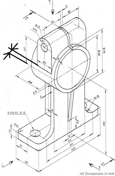 Lurking Posted November 6, 2012 Author Posted November 6, 2012 The red "thing" is called a rib. Use offset to set center of isocircles. I would not spend 10 minutes doing isometric 2d as it is difficult, of limited use and old school. So much easier to simply do as 3D. Can you explain a little bit more how to do it in isometric view? The "thing (it's a web)" in red looks to me that is starts at 20mm up from the bottom of your part and then runs to the bottom centre of the 70mm diameter. Draw a line from the centre of the 70mm dia. then trim it to the outer edge. The start a line from 20mm up from bottom and connect the two. That should give you the centre of the web. At least in my head without drawing the part it works. Used to do a lot of iso, not so much any more But how do you know where is the center of that isometric circle? Because of the view, it's center is a little bit off from platform centre, but the picture just shows that there is a 105 length differentiating from platform centre and circles centre, but you don't know where excactly (in right side) its centre should be. So isometric view nowadays is not used at all? I actually wanted to learn 3d modeling and found a tutorial, witch started from isometric drawing and these were the exercises, so i thought maybe i should learn this very good and then after this go to 3d modeling. But thanks guys, i should probably just start straight from 3d. Quote