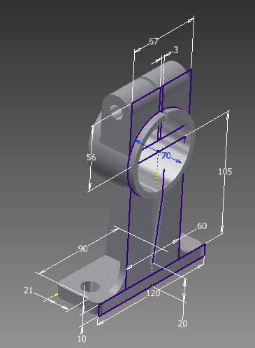 iainlines Posted November 6, 2012 Posted November 6, 2012 The "thing (it's a web)" in red looks to me that is starts at 20mm up from the bottom of your part and then runs to the bottom centre of the 70mm diameter. Draw a line from the centre of the 70mm dia. then trim it to the outer edge. The start a line from 20mm up from bottom and connect the two. That should give you the centre of the web. At least in my head without drawing the part it works. Used to do a lot of iso, not so much any more Quote