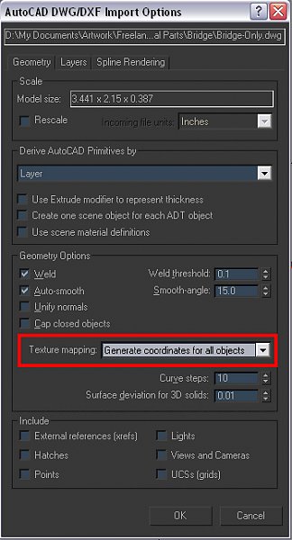 Cad64 Posted November 10, 2008 Posted November 10, 2008 1. In the "Import Options" dialog, do you have "Generate coordinates for all objects" selected"? (See image below) 2. Have a look at these tutorials: http://www.cadtutor.net/tutorials/3ds-max/transforming-objects.php Quote