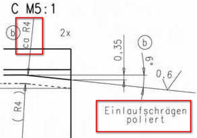 Tyke Posted December 9, 2012 Posted December 9, 2012 Hi Ken, The "ca" before the "R4" means approximately, not exactly 4. Perhaps you need to set the precision value in your dim style. The second note "Einlaufschrägen poliert" means "approach slope polished" Quote