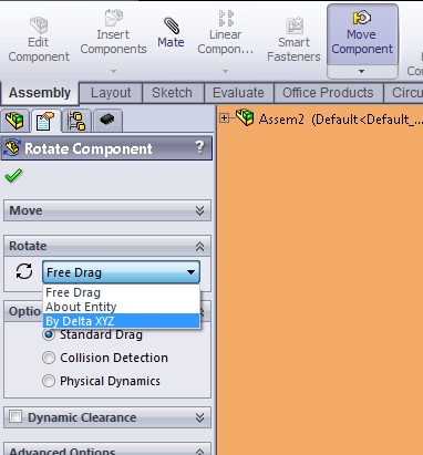 Rewind23 Posted April 19, 2013 Posted April 19, 2013 @jiggly - since you need to rotate that teardrop part have you tried the rotate feature in assembly?Its under the move component feature, then you can use Rotate component>By Delta X,Y,Z after selecting this you have the option to rotate the part in XYZ axis. Maybe this can help you rotate the part with specified degrees.See picture below. Quote
