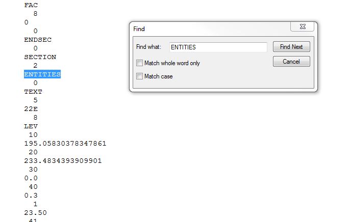 eldon Posted May 26, 2013 Posted May 26, 2013 Open the DXF file in a text editor, and do a search for ENTITIES. Quote