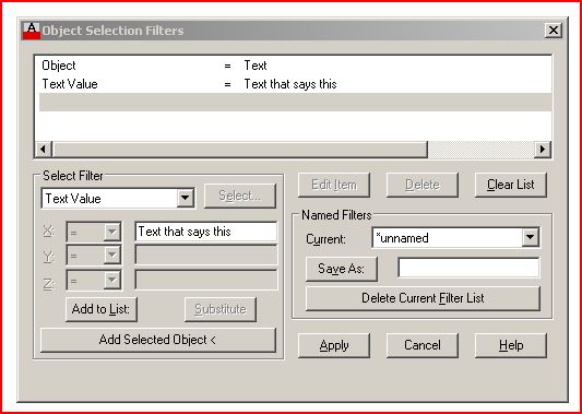 Dadgad Posted September 4, 2013 Posted September 4, 2013 Glad that worked for you. You could select all the occurrences of a particular text string by using the FILTER command, as shown in the image. If after using it, you lose the selection set, just start the Move command and use P for previous selection set. Should you want to create filters for reuse another time, as setting them up takes more time than using them, use the SAVE AS option. Filter is a very useful command. Quote