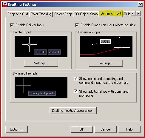 Dadgad Posted September 11, 2013 Posted September 11, 2013 I don't use DYNAMIC INPUT but I do use OBJECT TRACKING. I thought that the coordinates were coming from DI. Just checked and I was wrong. They don't come from tracking either. I'm not sure what the OP is seeing. You need to set the DYNAMIC INPUT display settings however you want them to display, a number of options available, one or two fields at a time, and different feedback. If you right click on the Dynamic Input icon and choose settings you can make all these changes. Quote