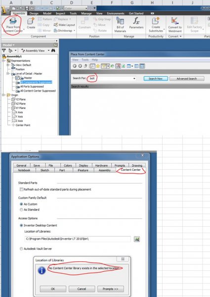 Sengna Posted November 8, 2013 Posted November 8, 2013 (edited) I tried to place a bolt or nut from the content center but found none on content center, as show on the image below, am i missing some setting or from the original install disk? This is inventor 2010, on Window 7. any help would be appreciated.. Edited November 10, 2013 by Sengna Quote