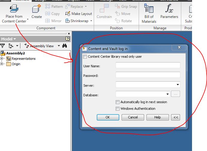 Sengna Posted November 9, 2013 Author Posted November 9, 2013 (edited) I realized that Autodesk Vault server is unchecked, now i checked it and the "Content and vault log in" dialog pop up, User name and password? server? and database? I have not set this before, should i just create one?? . Edited November 11, 2013 by Sengna Quote