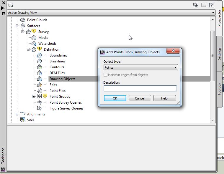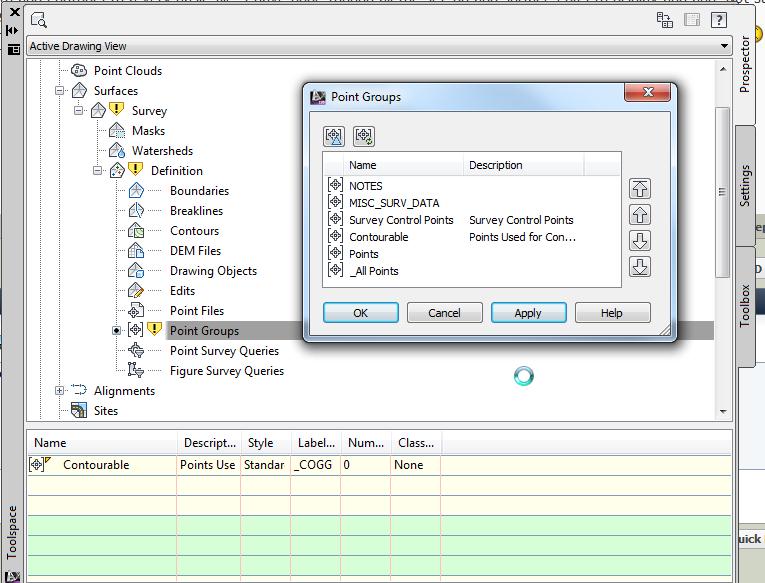 Kwiz Posted February 20, 2014 Posted February 20, 2014 I am using Civil 3d and have a file in which I have added points called all points- It has Northings and eastings and elevation. I want to add contours to a very basic file, I have gone though all the set-up and surface edits to display and add. Not sure where I have go wrong. Thanks again I been using Cad for a long time and I have done something wrong- maybe its just me getting old . Thanks againg KWIZ Quote