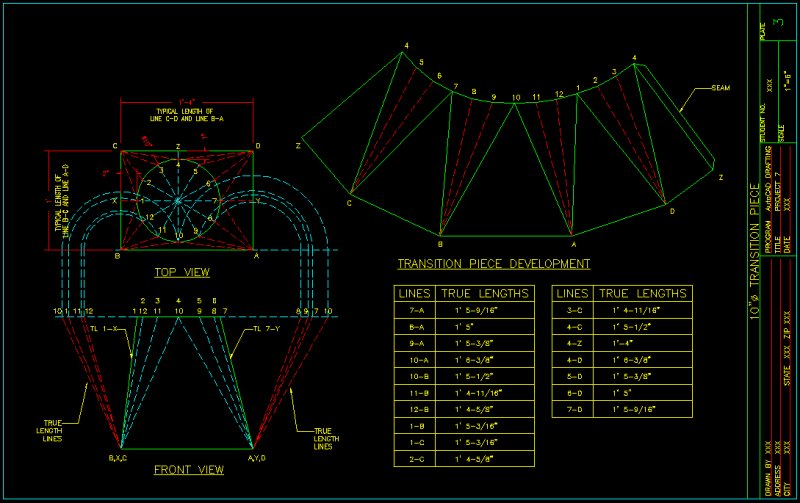 ReMark Posted April 28, 2014 Posted April 28, 2014 (edited) That looks very similar to the HVAC project drawing (see image below) that Penn-Foster students were assigned. The intent of the drawing is to show true lengths of the transition piece is it not? Edited April 28, 2014 by ReMark Quote