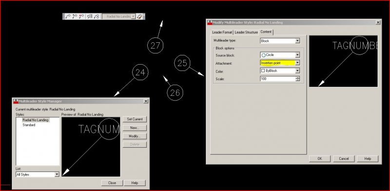 adamlister Posted May 16, 2014 Posted May 16, 2014 Hi, I am currently using a multi leader with the default tag circle attached to insert balloons into my drawings. I would like the leader to attach to the circle in a straight line to the centre of the circle as on the left hand side balloon bellow, I currently get what is shown on the right hand side. I can remove the landing gap but the leader will only attach to the balloon on the 4 quadrants, is there anyway to amend this? Thank You. Quote