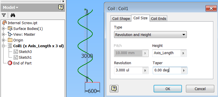 JD Mather Posted May 29, 2014 Posted May 29, 2014 Delete the 3D sketch. Select the Coil command and set the output to Surface. Select the Coil construction line as the axis. Set the desired Height and Pitch (turns). I would never ever use the 3D sketch helix - I don't understand why it even exists since it is difficult to fully constrain/edit. Quote