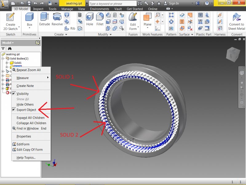 mattador04 Posted June 10, 2014 Posted June 10, 2014 I have an .ipt file, which has two revolved profiles, each of which are separate solids. Can i push the second solid out as a new .ipt? When i rt. click on solid 2 in the browser, i get a check or uncheck option for "export object". What now? I've done something like this before, but it was a while back...... thanks ya'll Quote