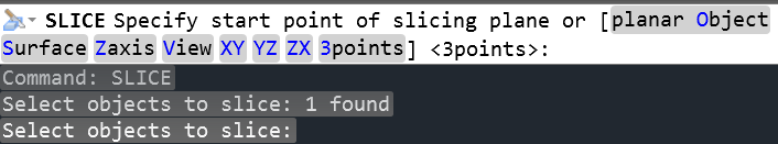 FazBear Posted September 7, 2014 Posted September 7, 2014 after starting the slice command you can choose an option to change the bahavior of the slice, without selecting the [3 points] option you will only be able to select 2 point and it will apply a slice to the current work plane (or at least this is what i think i does, i never use this). so after you input slice, before you start picking points you must choose the 3 points option. this will allow you to pick the 3 points you require. Ooops, didnt realise you have figured it out. GJ Quote