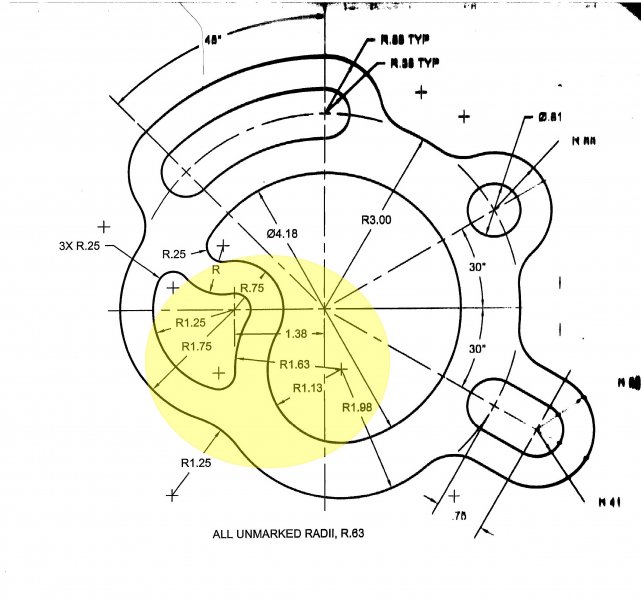 Behemothrex Posted September 16, 2014 Posted September 16, 2014 Hey guys, Well its been a while since I posted, but that's a good thing, as I have been progressing in my AutoCad adventure without to many problems. But this semester I have run into a problem that I have yet to overcome. So assistance would be appreciated. The trouble I am having is finding the centers of some of the circles I need to place to create the different curves that I need to complete the drawing. I have highlighted the area in question in yellow. Now a few of the circles are dimensioned on the drawing and they are easy to plot out, but for the life of me I cannot figure out how they are placing the other circles. Specifically the circles with the radii of 1.63, 1.98, 1.13 and the one on the outside of 1.25. Any thoughts would be appreciated. I have included the original and what I have completed so far. Thanks DGM - Problem 5-11.dwg Quote