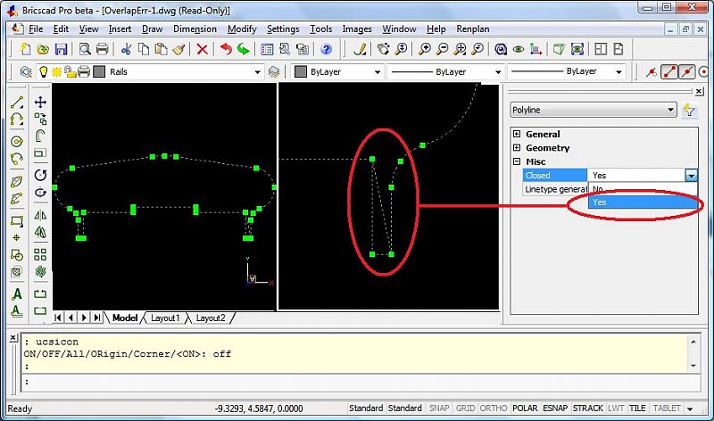 Raggi_Thor Posted December 12, 2008 Posted December 12, 2008 You had an overlap in the first or last segment. See what happens when you close the pline: Quote