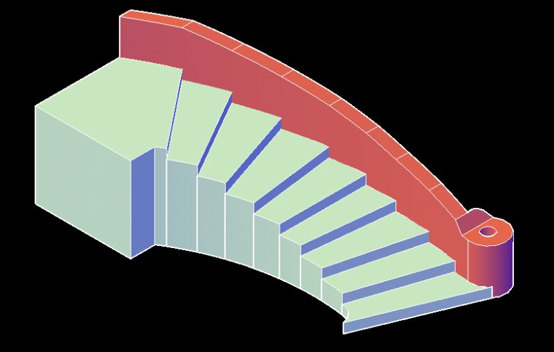 BIGAL Posted February 22, 2015 Posted February 22, 2015 A simple way to create a 3d spiral stair is to make a single tread block and copy vertically and rotate the correct angle, the handrail can be a simple circle extruded along a path the only tricky bit is you must set up a ucs with center pt as the stair and incline angle equal to the rise then just extrude along path. Quote