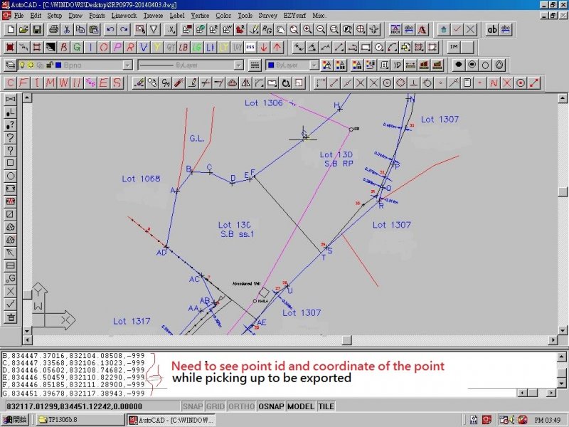 nelsonfok Posted February 23, 2015 Author Posted February 23, 2015 Pls see the attached image. I need to see point id, northing, easting & height of each selected point while picking up the points to be export. Quote