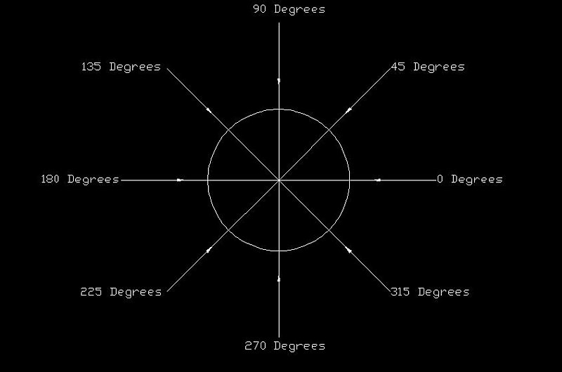 Tankman Posted December 19, 2008 Posted December 19, 2008 The other thing to remember when drawing angles in AutoCAD, is a line drawnat 0 degrees would not be vertical, it would be Horizontal. And the angles rotate anti clockwise NOT clockwise - see image below [ATTACH]8935[/ATTACH] I get so many drawings that are laid out clockwise, what a turn off! Nice post skipso, can we send this via bulk mail to some engineers we all know 'n love? I often see 0° at 6 o'clock, 90° at 9 o'clock, etc. Feel like I'm workin' backwards! Quote