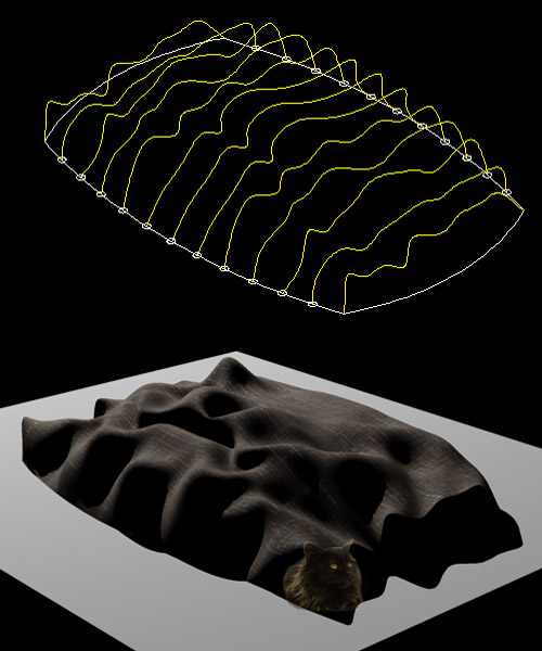 arjun_samar Posted December 20, 2008 Author Posted December 20, 2008 you will need to turn surftab1 and 2 up to help fill those seams around the edge. I would also try and soften the edges a bit. Since you are using acad07 you have loft in your arsenal so give that a shot. draw the bottom edge of the sheet(in 3d, not in a single Z coordinate) and draw "levels" of the sheet as they go up the bed. I wouldnt try to get as much "fluff" on the sheet as you have. using a certain surface and bump map will look much better. big bro shift.. here what you've told me to use the loft command... hope its right..... thanks a lot big bro shift... Quote