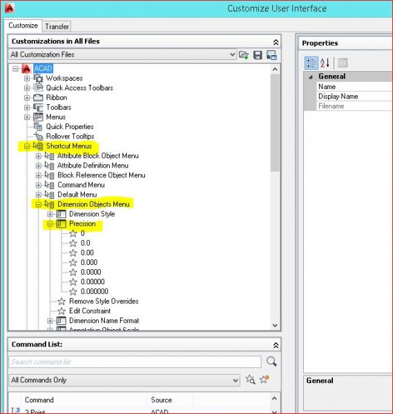 rkent Posted April 30, 2015 Posted April 30, 2015 I have 2016 and the Precision choice is still there for me. Go into the CUI, Shortcut Menus, Dimension Objects Menu and see if it is showing there, should be there by default. Quote